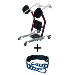 The (BestCare) Bestmove Standing Transfer Aid is a transport assistance unit that keeps the resident actively engaged in the transport process. Users grasp the middle bar and use their own strength to pull themselves up into position. A padded split seat swings out to allow loading or unloading, then swings back to form a comfortable and stable transport seat. The Stand Assist is a convenient toileting alternative to a wheelchair.