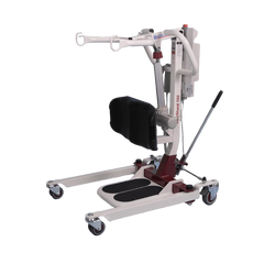 The BestStand SA182 is an affordable sit-to-stand patient lift. It is a compact and easily maneuvered product to lift and transport anyone 400lbs or under. It has a low base height of 4.9" which is ideal for sliding under most furniture or chair needed. Using a foot pedal, the base can easily open up to allow wheelchair or toilet entrance.