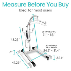 The Vive Electric Patient Lift integrates cutting-edge technology to support efficient caregiving routines. Its user-centric design, from the easy-to-adjust base to the intuitive battery management system, ensures a hassle-free experience that prioritizes patient well-being and caregiver convenience