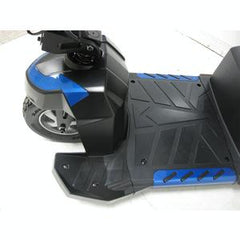 For better in and out access, the padded armrests can be flipped up or removed altogether and the included 20AH batteries allow for a maximum range of 15 miles. With red and blue interchangeable panels, you can change the look of your scooter at anytime! The large front mounted basket will keep your personal items in sight, while holding groceries, or other shopping treasures.