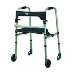 Features a comfortable flip-up seat and built-in carrying handle, durable front 5" fixed wheels, rear spring-loaded SureGlide...